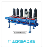 疊片過濾器的濾芯,疊片為雜質過濾載體,它由一組雙面帶不同方向溝槽的塑料盤片相疊加構成,其相鄰面上的溝槽棱邊便形成許許多多的交叉點,這些交叉點構成了大量的空腔和不規則的通路,這些通路由外向里不斷縮小。過濾時,這些通路導致水的過流,最終促使水中的雜質被攔截在各個交叉點上。把若干個盤片疊加安裝在過濾芯骨架上,在彈簧和進水的壓力作用下就形成了一個外松內緊的過濾單元。每個過濾單元中被彈簧和水壓壓緊的疊片便形成了無數道雜質顆粒無法通過的濾網,疊片寬度為12-14mm,疊片材質為優質工程塑料,耐磨性極高。輔以不銹鋼彈簧支撐,結構堅固。反沖水流沿疊片內壁切線方向自內向外沖洗疊片表面粘附的各種雜質,疊片在反沖洗水流的作用下作旋轉,保證所有污物均被有效洗凈并排出??墒褂脮r間間隔和壓力差控制反沖洗的所有步驟。一旦設定完畢,即可長期使用。自動反沖洗過濾器在不中斷工作的情況下在數秒內完成整個自動反沖洗過程。采用這種過濾原理的過濾器在過濾和反沖洗時疊片間隙動態可變,對提高過濾性能、過濾水質非常有利, 又可大大減少反洗用水量,通常自耗水量約為0.25%。盤片上溝槽的不同深淺和數量確定了過濾單元的過濾精度。