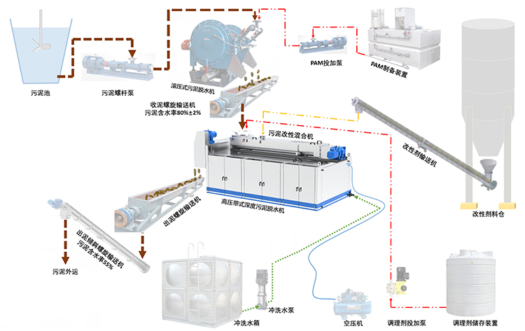 污泥改性調理+高壓帶式深度脫水工藝特點